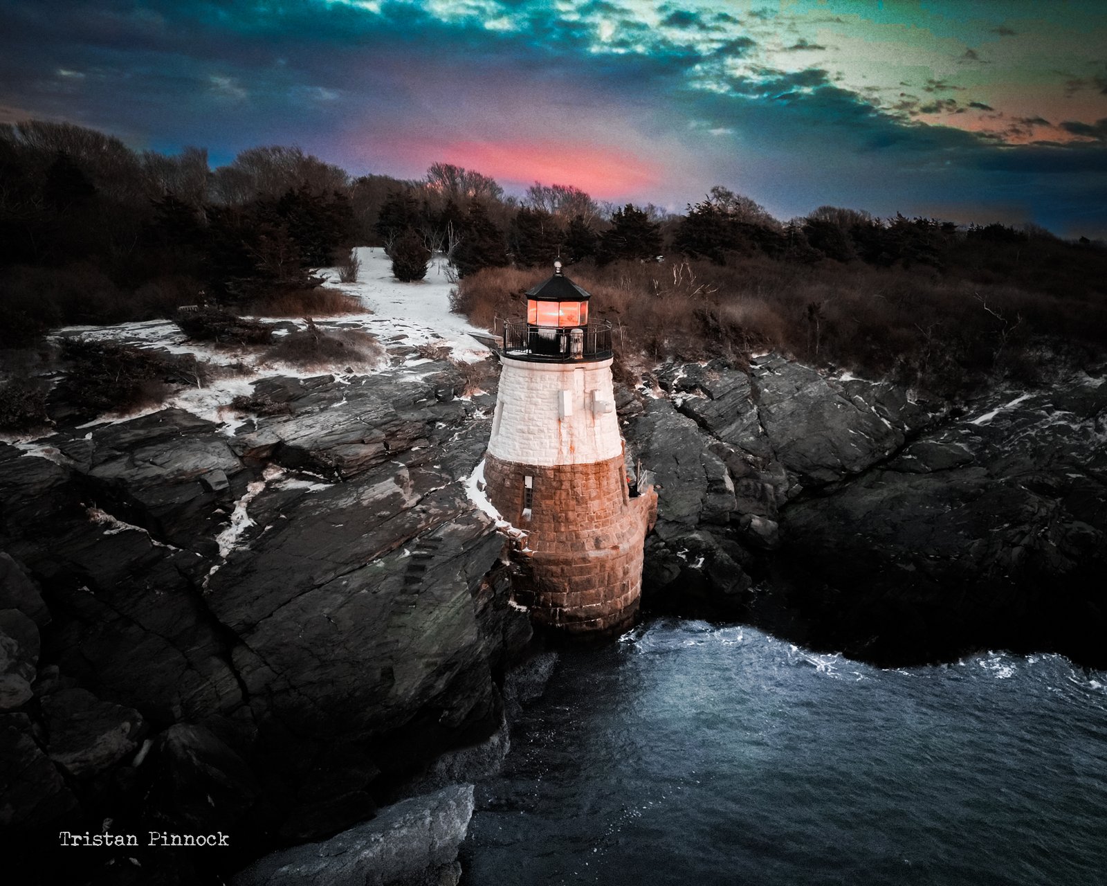 Even winter makes a beautiful backdrop for the Castle Hill Light.