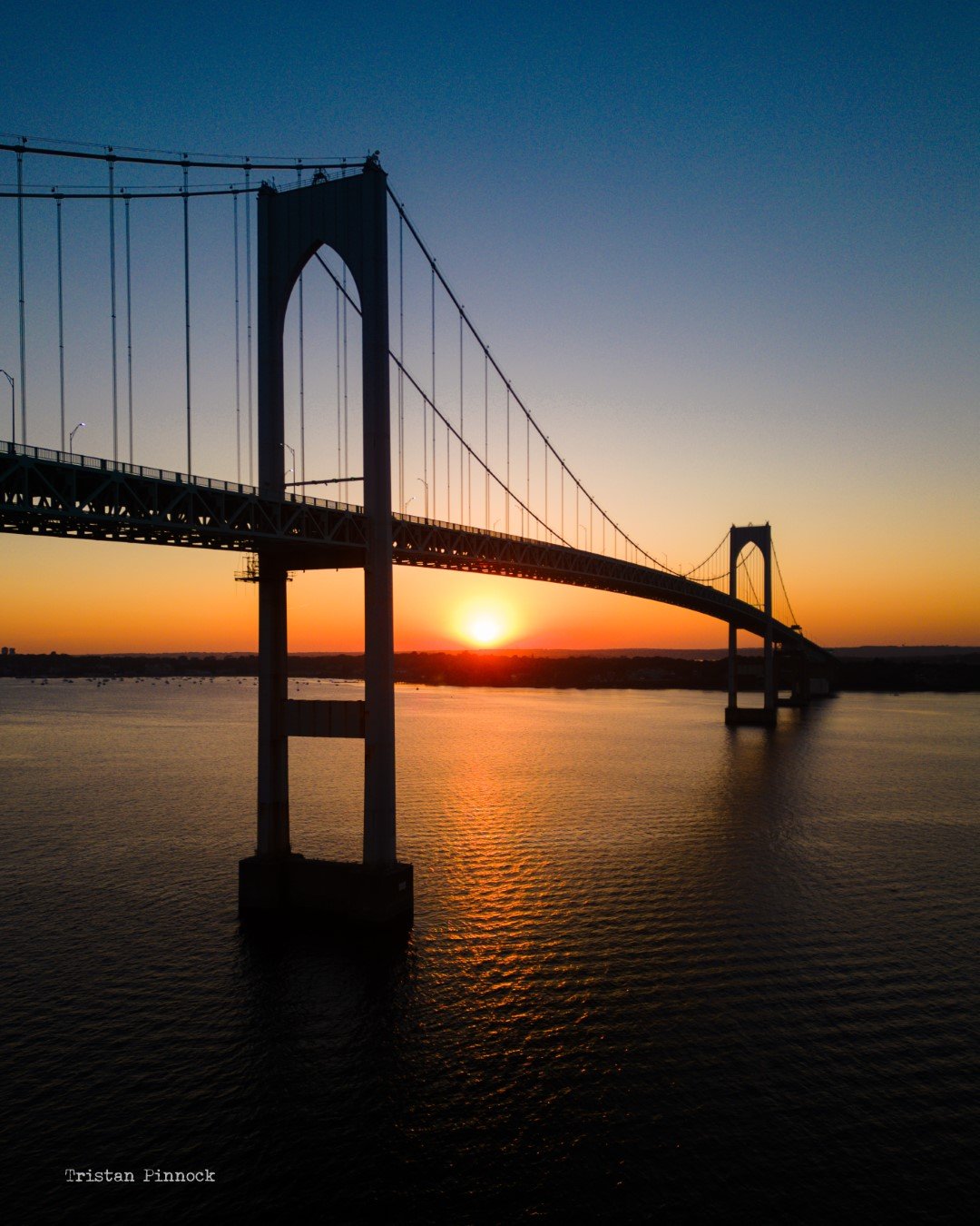 As fall arrives in Newport, the starts setting further and further to the south, traditionally making it much more difficult to frame behind the Newport Bridge without access to the Newport Naval Station or a boat. Fortunately a drone offers an amazing degree of flexibility in that regard.